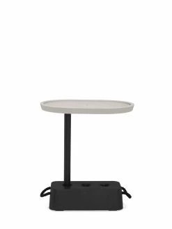 Brick Table is gemaakt van superstevig, gerecycleerd materiaal en van staal dat door weer en wind mooi blijft. De zware basis ziet eruit als een cementblok. Vul hem met water of zand en je tafeltje staat als een huis. Het tafelblad steek je simpelweg in een van de drie gaten. En met het koord aan de basis sleep je dit handig tafeltje je hele tuin rond.