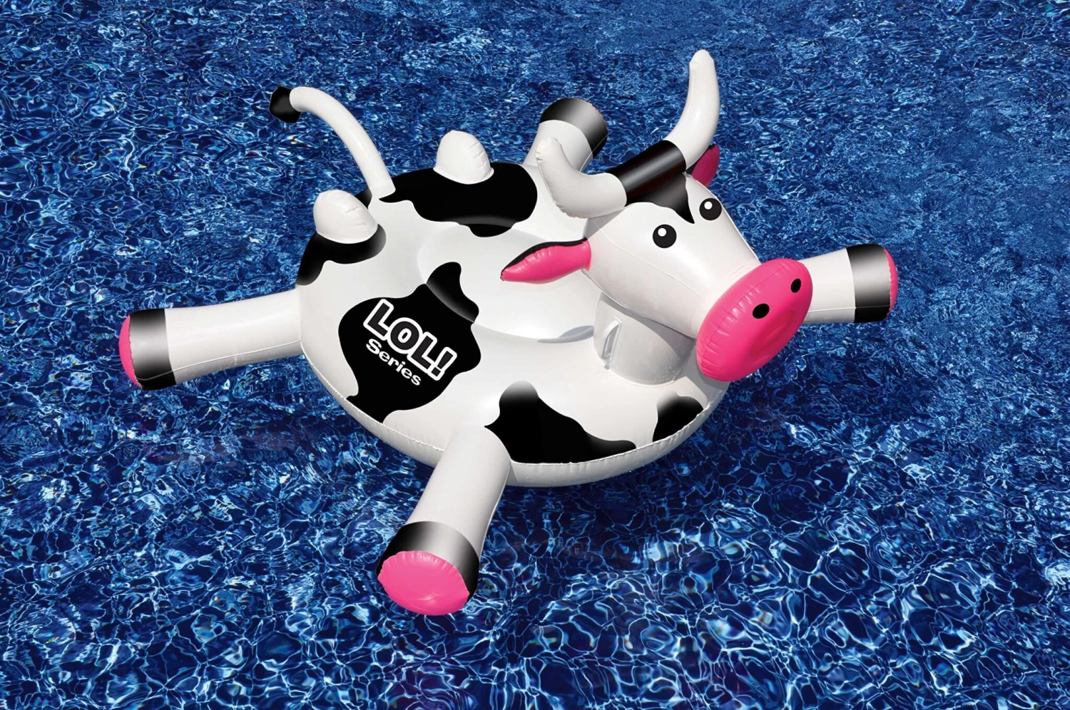 Gekke koe opblaasbare matras. Leuke opblaasbare matras in de vorm van een koe. Super leuk voor de kids. Afmetingen 150 x 129 x 79 cm.