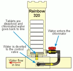 De plaatsing van het toestel is tussen de zuig en persleiding. Alle toebehoren voor de montage worden meegeleverd. De chlorinator plaatst u best in “by-pass” over de filter en is bijgevolg zeer eenvoudig. Zo kan u de dosering eenvoudig regelen. Het volledige debiet moet dus niet door het toestel, een klein zij – stroom zwembadwater is voldoende.