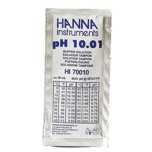 Ijkvloeistof voor het ijken van een pH meter. Zakjes 20ml. Lange houdbaarheid. Gestandardiseerde oplossing.