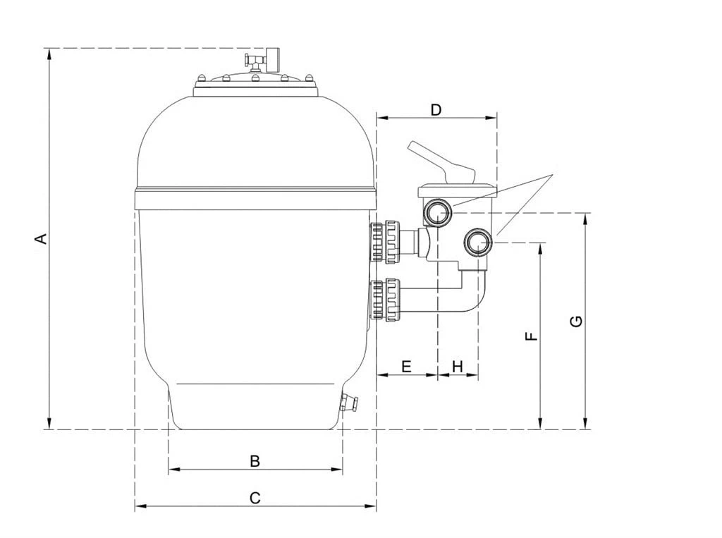 - De 720mm filter is voor een pomp met max. debiet van 22m³/h