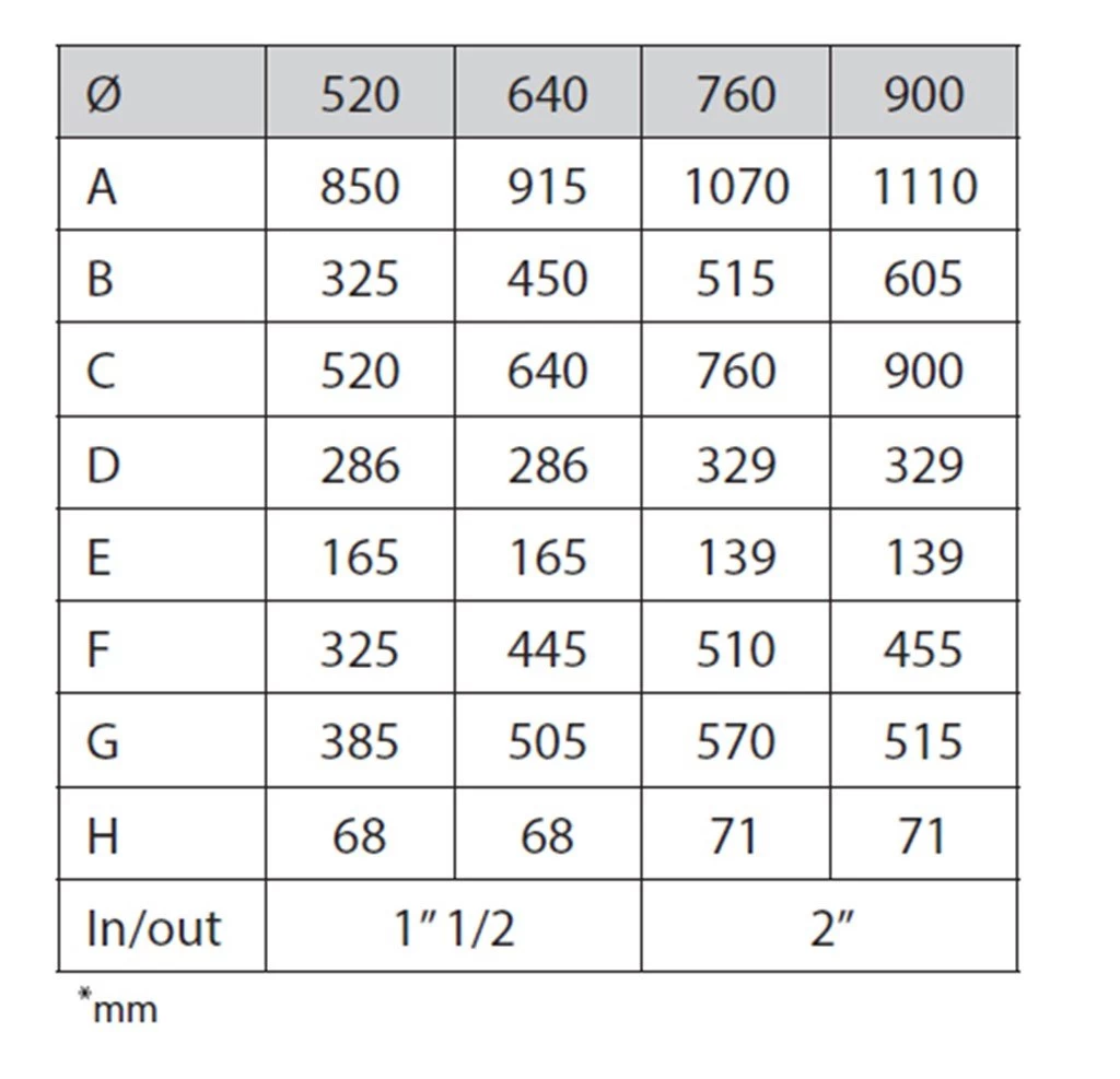 - De 900mm filter is voor een pomp met max. debiet van 30m³/h