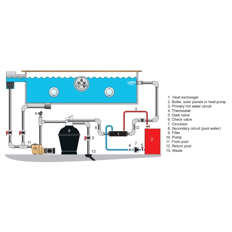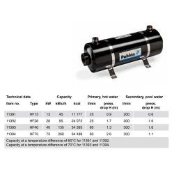 De Hi-Flow warmtewisselaar horizontaal is een degelijke en veelvuldig gebruikte warmtewisselaar, met een efficiënte warmte overdracht capaciteit. De warmtewisselaar is speciaal ontworpen voor zwembad toepassingen en andere toepassingen waar er een hoge capaciteit en een minimaal drukverlies vereist is. Alle modellen kunnen geïnstalleerd worden samen met boilers, warmtepompen, zonnepanelen en andere warmtebronnen. Het ontwerp is ligt en compact. Het gebruikte materiaal – zuur bestendig roestvrij staal ASI316 INOX – is uitgekozen voor gebruik in een omgeving waar er corrosie gevaar dreigt.